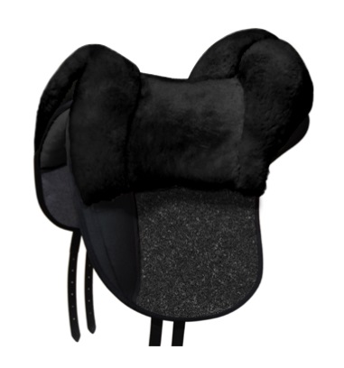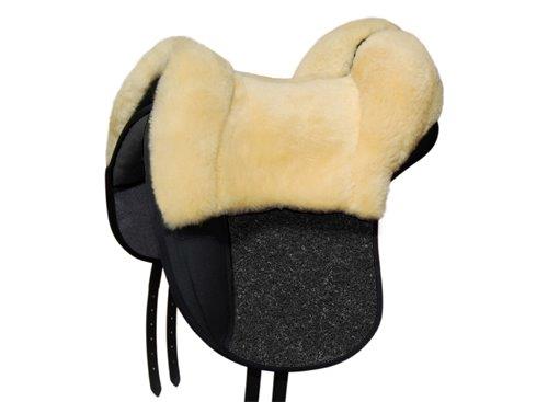 Grandeur Fellsattel Tomentum Dressur. Eine Weiterentwicklung eines Reitkissens aus robustem Nadelflies mit einer sehr festen ganzflächigen Einlage, der Möglichkeit Steigbügel anzubringen, einem etwas verstellbaren Wirbelkanal und einem Lammfellsitz.