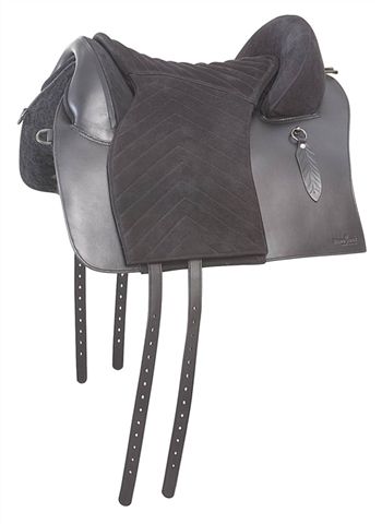 Weiches, geschmeidiges, griffiges Wildleder mit eingearbeitetem Polster für den Sattelsitz und stabileres, glattes Sattelleder (südamerikanische Qualität) für den Unterbau. 6 D-Ringe zum Befestigen der Sattelunterlage etc..