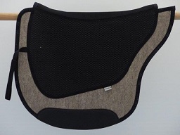 Variante e : Haftauflage luftdurchlässig = aus sehr haltbarem Gittergewebe im Gegensatz zu Moosgummi (für noch mehr Sicherheit gegen Verrutschen des Sattels gegen die Unterlage - eine nicht passende Unterlage, ein nichtpassender oder falsch gegurteter Sattel kann dennoch verrutschen) rechts und links mit Taschen für zusätzliche Einlagen. Es ist individuell anpassbar und eignet sich besonders für Pferde mit schwieriger Sattellage.OHNE Einlagen; passende Einlagen bitte anfragen