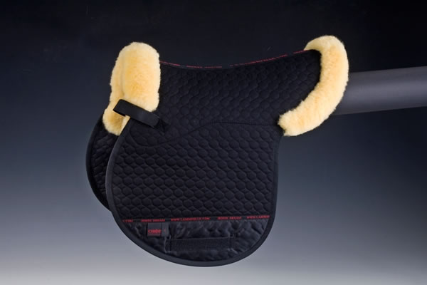 Christ Lammfell Satteldecke Champ Rand Das Lammfell der Christ Satteldecke ist im Sitzbereich angebracht. Wollhöhe ca. 30 mm. Die Befestigungsmöglichkeiten durch Klettstrupfen und ein hoch geschnittener Widerrist ermöglichen besten Halt und Anpassung an die Rückenform. Der eingearbeitete Nylonschutz verhindert das Aufscheuern im Bereich der Sattelgurtung. Vorne wird das Lammfell bis auf die Oberseite herumgezogen und dient als Sattelanlage. Maschinenwaschbar mit einem Lammfellwaschmittel und trocknerbeständig