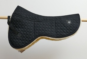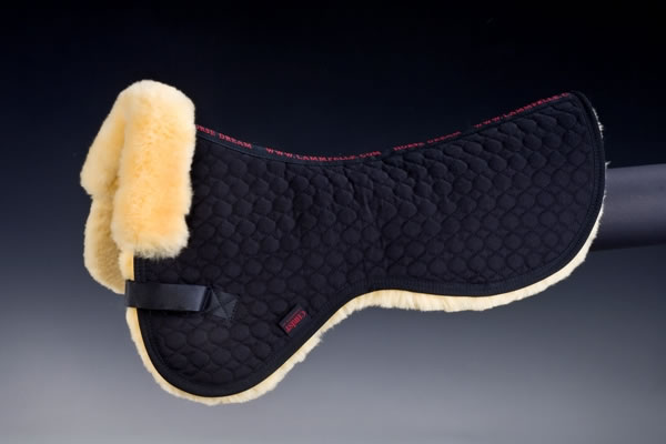 Im Schulterbereich ist dieser Artikel tiefer geschnitten um lange Kopfeisen zu unterpolstern. Die Unterseite besteht aus echtem Lammfell in einer Wollhöhe von ca. 30mm. Die Oberseite ist aus Spezial-Satteldeckenstoff gefertigt, der aus mehreren Komponenten besteht, die miteinander versteppt sind. Die Befestigung erfolgt mittels Klettstrupfen an den Sattelgurtriemen. Vorne ist das Lammfell bis auf die Oberseite herumgezogen und dient als Sattelanlage. Maschinenwaschbar mit einem Lammfellwaschmittel und trocknerbeständig.