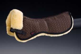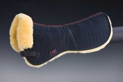 Christ Lammfell Sattelkissen Ultra Plus Einzeltasche hinten mit Einlage. Wirbelsäulenfreies Sattelpad aus Steppstoff und echtem Lammfell mit einer Wollhöhe von 30 mm. Es hat herausnehmbare Aufpolsterungen in einer Stärke von 15mm im hinteren Bereich. Die Oberseite besteht aus unserem Spezial-Satteldeckenstoff. Befestigt wird es mittels Klettstrupfen an den Gurtriemen des Sattels. Vorne wird das Lammfell bis auf die Oberseite herumgezogen und dient als Sattelanlage. Maschinenwaschbar mit einem Lammfellwaschmittel.