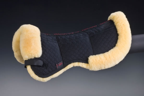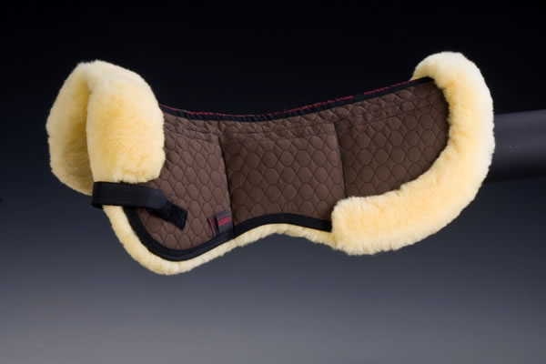 Das Christ Lammfell Sattelkissen UltraTriple Rand Wirbelsäulenfreiheit portofrei bestellen. Es besteht auf der Unterseite aus echtem Lammfell mit einer Wollhöhe von 30 mm, wobei der Bereich des Wirbelkanals freigelassen wird. Es sind 6 Taschen für herausnehmbare Aufpolsterungen eingearbeitet. Damit lassen sich vorübergehende Paßformprobleme eines Sattels ausgleichen. Die Oberseite besteht aus unserem Spezial-Satteldeckenstoff. Befestigt wird es mittels Klettstrupfen an den Gurtriemen des Sattels.Vorne wird das Lammfell bis auf die Oberseite herumgezogen und dient als Sattelanlage. Maschinenwaschbar mit einem Lammfellwaschmittel sowie trocknerbeständig. Auch als Satteldecke oder Schabracke erhältlich.