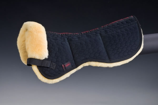 Das Christ Lammfell Sattelkissen UltraTriple Wirbelsäulenfreiheit portofrei bestellen. Es besteht auf der Unterseite aus echtem Lammfell mit einer Wollhöhe von 30 mm, wobei der Bereich des Wirbelkanals freigelassen wird. Es sind 6 Taschen für herausnehmbare Aufpolsterungen eingearbeitet. Damit lassen sich vorübergehende Paßformprobleme eines Sattels ausgleichen. Die Oberseite besteht aus unserem Spezial-Satteldeckenstoff. Befestigt wird es mittels Klettstrupfen an den Gurtriemen des Sattels.Vorne wird das Lammfell bis auf die Oberseite herumgezogen und dient als Sattelanlage. Maschinenwaschbar mit einem Lammfellwaschmittel sowie trocknerbeständig. Auch als Satteldecke oder Schabracke erhältlich.