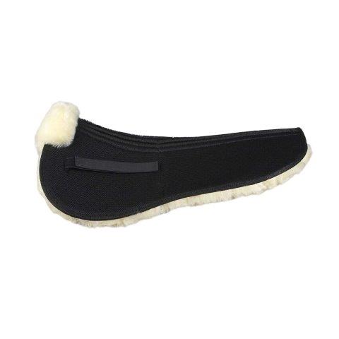 Engel Sattelkissen 1 Aufpolster AirTec V-Line Rand vorne. Diese Serie verbindet bewährte Eigenschaften klassischer Lammfellsattelunterlagen mit den Vorteilen technischer Fasern. Hochwertiger, dauerelatischer Polymerkunststoff ist beidseitig von luftdurchlässigem Meshgewebe umgeben, und durch das Zusammenspiel mit perforiertem Lammfell entsteht durch die Bewegung von Pferd und Reiter ein natürlicher Pumpeffekt, der Ihr Tier deutlich weniger schwitzen lässt. Das Sattelkissen aus Meshgewebe und 100% Merino Lammfell aus Australien mit Fell im Sattelsitzbereich sorgt für optimale Luftzirkulation.