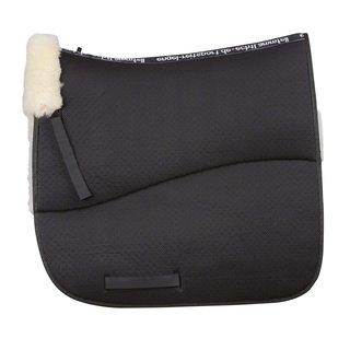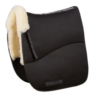 Engel Schabracke 1 AirTec V-Line Rand vorne. Diese Serie verbindet bewährte Eigenschaften klassischer Lammfellsattelunterlagen mit den Vorteilen technischer Fasern. Hochwertiger, dauerelatischer Polymerkunststoff ist beidseitig von luftdurchlässigem Meshgewebe umgeben, und durch das Zusammenspiel mit perforiertem Lammfell entsteht durch die Bewegung von Pferd und Reiter ein natürlicher Pumpeffekt, der Ihr Tier deutlich weniger schwitzen lässt. Das Sattelkissen aus Meshgewebe und 100% Merino Lammfell aus Australien mit Fell im Sattelsitzbereich sorgt für optimale Luftzirkulation.