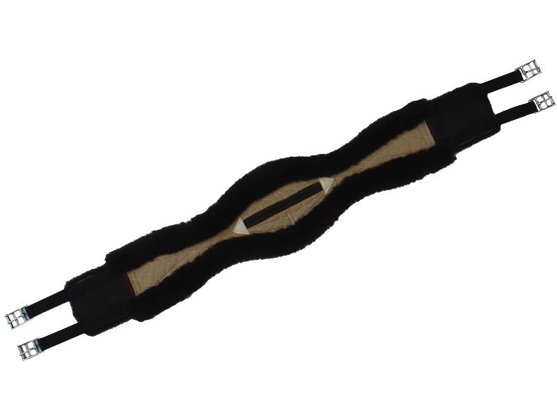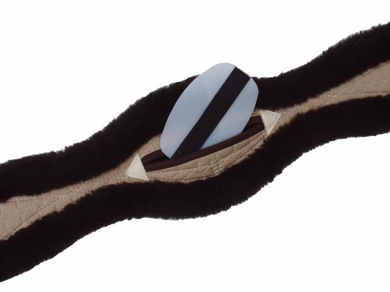 Mattes Langgurt anatomisch Lammfellsattelgurt mit Ellbogenfreiheit und breitem Mittelstück. Echt Lammfell mit POLY-FLEX Einlage gepolstert für optimale Druckverteilung. Um beide Längskanten gezogener Lammfellrand und SOFT-EDGE gegen Druck und Scheuern. Die Enden der Schnallenauflage sind flach auslaufend mit kurzwolliger Lammfellauflage, deshalb keine Druckstellen. Schnallen und D-Ring für Zügelhilfen sind aus Edelstahl. Beidseitig Mattes Schwerelastische Schnallenbefestigung (keine Weichelastik) . Die PlastikEinlage muss zum Waschen herausgenommen werden. Alle Mattesgurte sind mit mittlerer Martingalöse