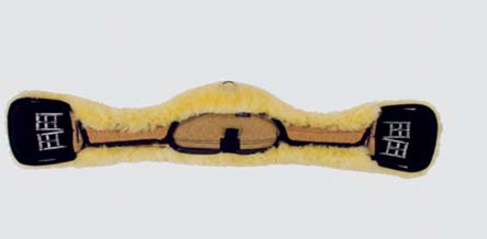 Mattes Lammfell Kurzgurt Asymmetrisch abnehmbar, Sattelgurt asymmetrisch geformt, mit besonders tiefer Ellbogenfreiheit und breitem Mittelstück: Bei vielen Pferden tritt überwiegend durch den Körperbau bedingt in der Gurtlage im Ellbogenbereich eine unangenehme Hautschädigung auf, die sehr leicht chronisch wird (Equines Sarkoid). Oft verhindert schon ein guter anatomisch geformter Gurt dieses Problem. Nach unserer Erfahrung benützen viele Reiter einen viel zu kurzen anatomisch geschnittenen Kurzgurt, bei welchem beide Schnallenunterlagen im Bewegungsbereich des Ellbogens aufliegen. Andere Reiter verschnallen einseitig, wodurch die Schnallenunterlage direkt im empfindlichen Bewegungsbereich des Ellbogens aufliegt. Solche Nachlässigkeiten bewirken sehr oft die genannten typischen Hautschäden. Die Verletzungen können schließlich innerhalb kurzer Zeit chronisch und äußerst problematisch werden.
