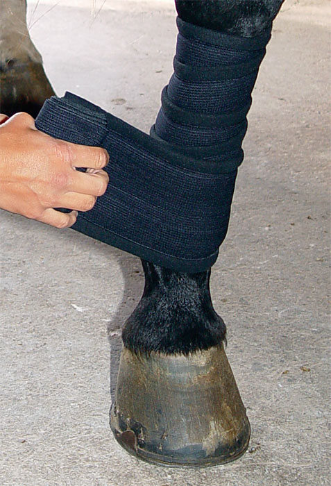 Anprobe verschmutzungsfrei durchführen z.B. : Mit Frischhaltefolie gewickeltem Pferdebein