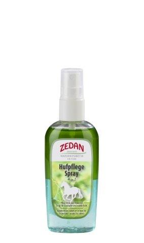 ZEDAN Hufpflege Spray 4in1 in handlicher 100 ml Sprühflasche. Zur nachhaltigen Pflege von Hufwand, Kronrand, Strahl und Sohle. Fördert das Wachstum der Hufe, erhält die Elastizität und verleiht einen glänzenden Auftritt. Sprühanwendung mit Überkopf-Funktion. Lorbeeröl fördert die Durchblutung, pflegt den Kronrand und hält die Hufe elastisch und belastbar. Traubenkernöl verleiht den Hufen einen schönen, natürlichen Glanz. Keratin festigt das Hufhorn.Zertifizierte Naturkosmetik für Pferde